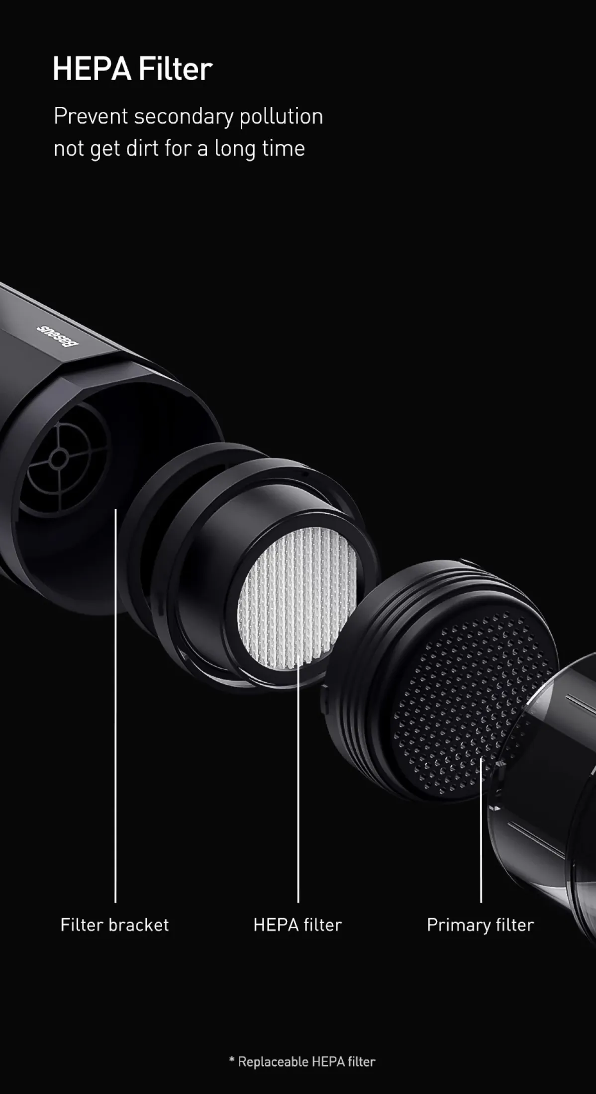 Mô tả sản phẩm Bộ 3 lõi lọc Baseus thay thế cho máy hút bụi Baseus A2