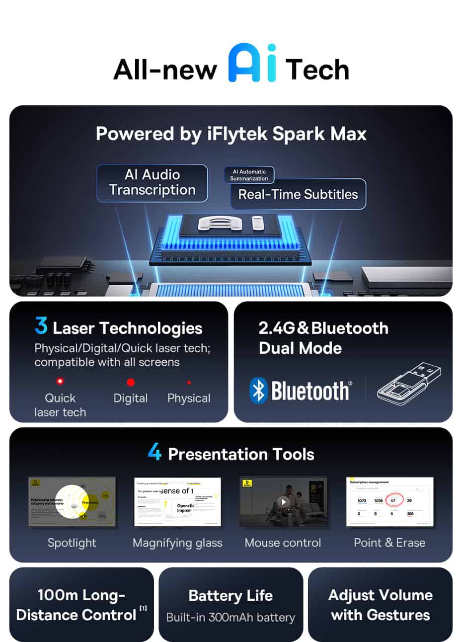 Với thiết kế thông minh, tích hợp nhiều công nghệ hiện đại, Baseus Orange Dot AI Voice Wireless Presenter (Laser đỏ) là lựa chọn lý tưởng cho: