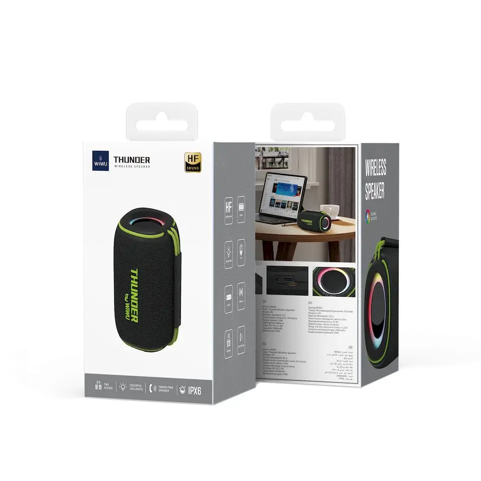 WiWU Thunder H5 là chiếc loa di động tích hợp nhiều tính năng hiện đại, mang đến trải nghiệm âm nhạc tuyệt vời cho người dùng. Với thiết kế bền bỉ, âm thanh sống động và khả năng kết nối đa dạng, sản phẩm này xứng đáng là người bạn đồng hành lý tưởng trong mọi cuộc vui.