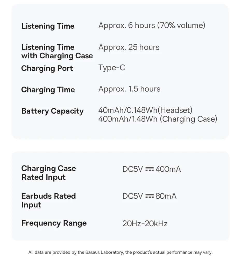 Thông số kỹ thuật Tai Nghe Bluetooth Baseus AirGo AS01 Open-Ear TWS Earbuds: