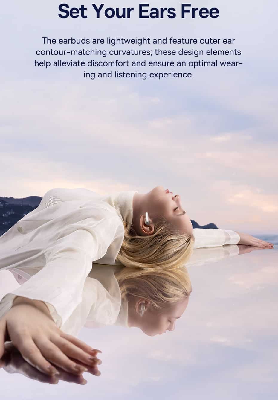 Thiết kế nhỏ gọn và ergonomic, với nút bấm dễ truy cập, giúp tai nghe vừa vặn và thoải mái trong quá trình sử dụng, ngay cả trong thời gian dài.