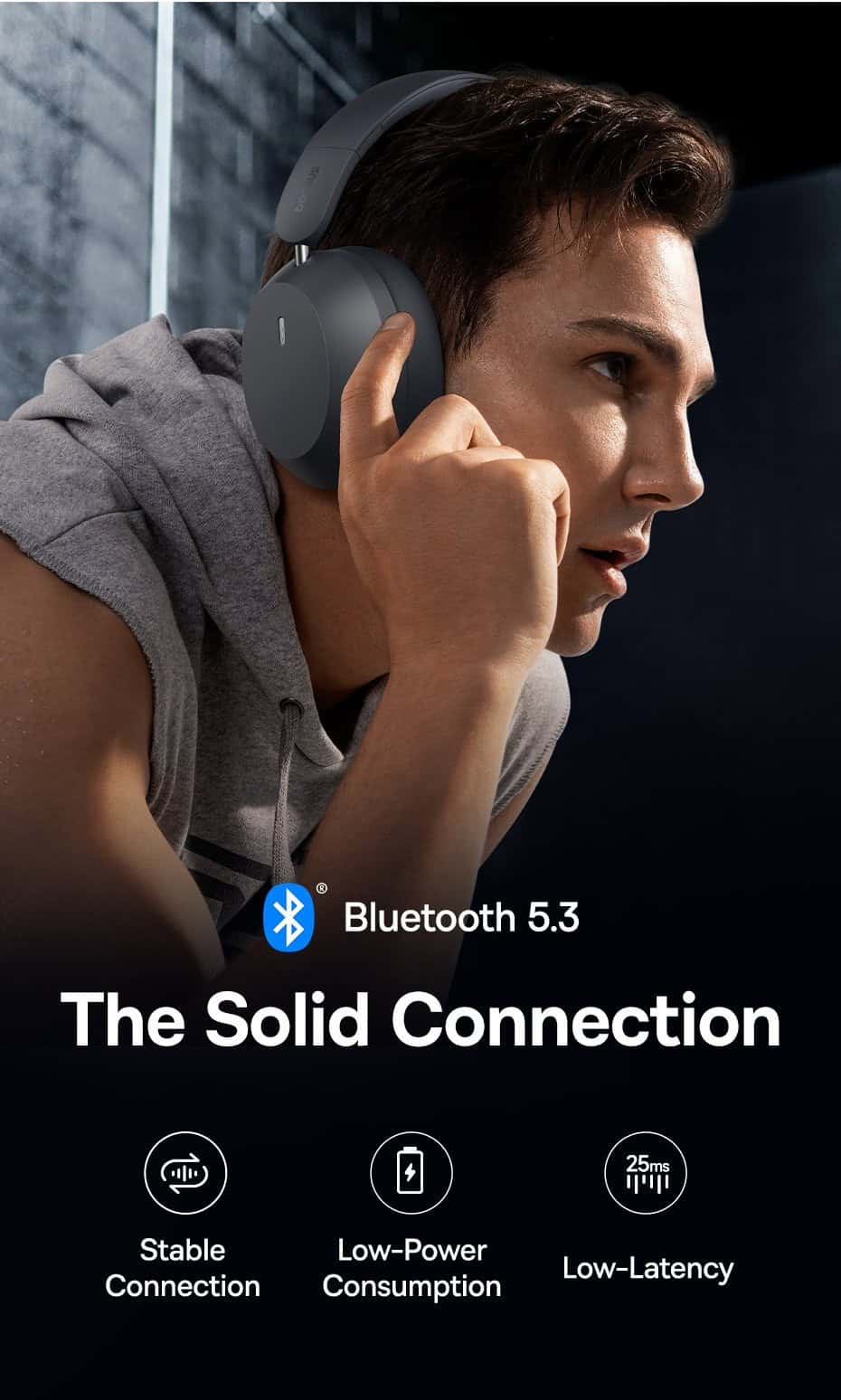 Với kết nối Bluetooth v5.3, tai nghe đảm bảo khả năng kết nối ổn định và cải thiện hiệu suất truyền tải âm thanh. Bạn có thể kết nối nhanh chóng và dễ dàng với các thiết bị di động, máy tính bảng và các thiết bị hỗ trợ Bluetooth khác.