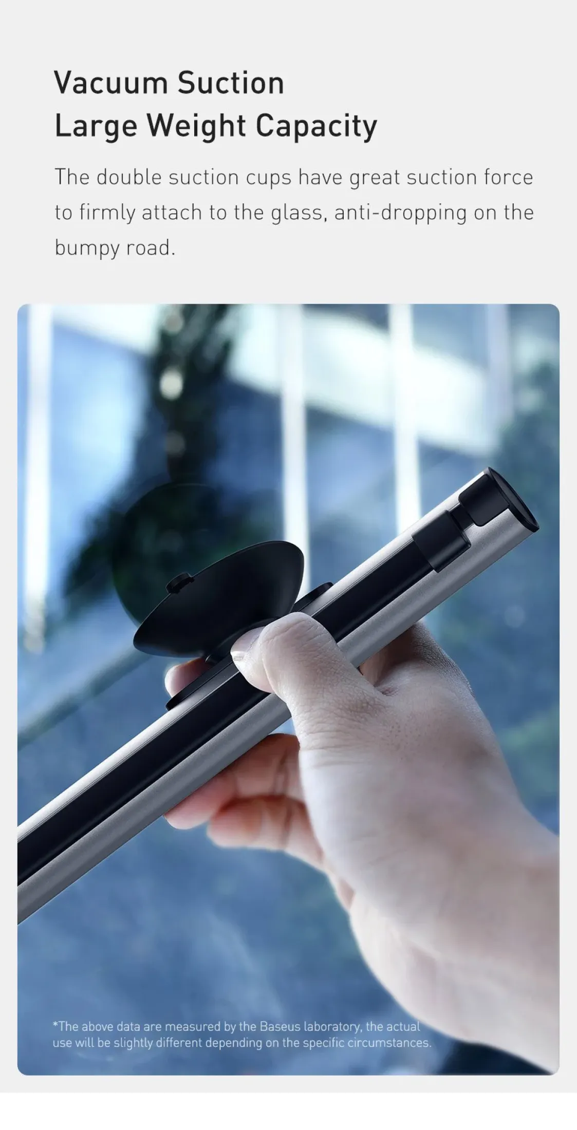 - Các giác hút đôi có lực hút lớn giúp bám chắc vào kính, chống rơi rớt trênđường gập ghềnh.