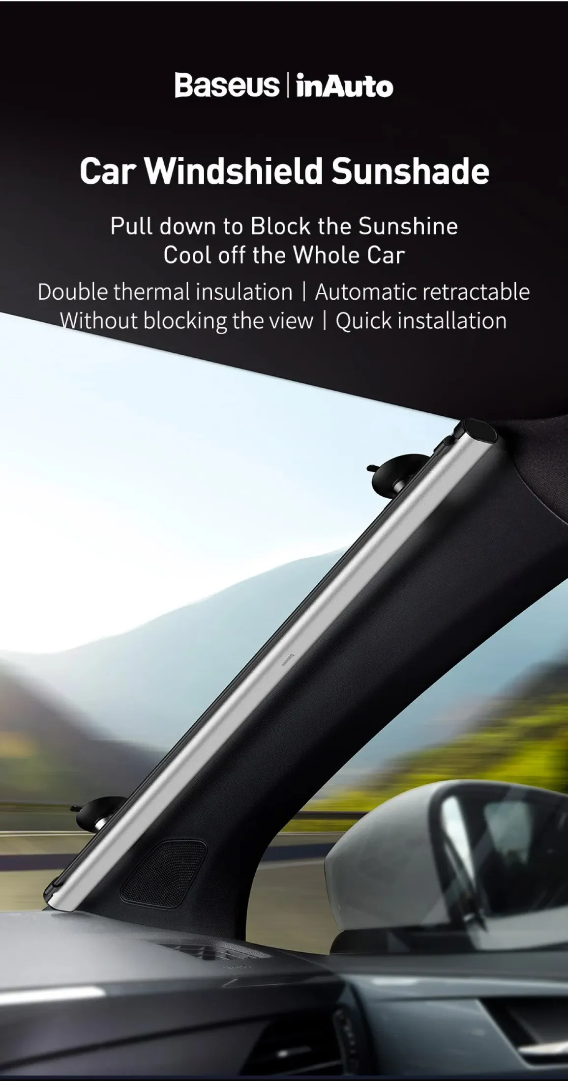 - Làm mát Toàn bộ Xe / Cách nhiệt kép / Tự động thu vào / Không cản tầm nhìn / Lắp đặt nhanh chóng